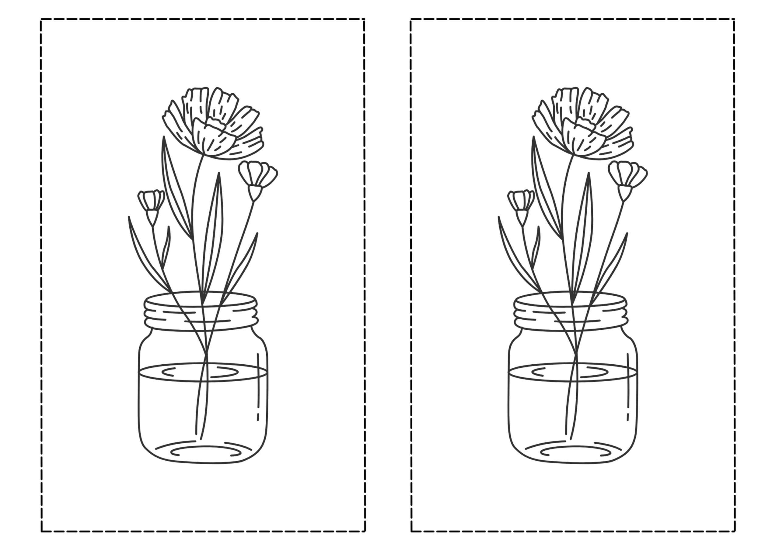 As said earlier, this free printable was made in Canva. Feel free to print it out if you want to make a card yourself. The printable is of the size A4 and for each print out you get two vases of flowers so you can make two cards.